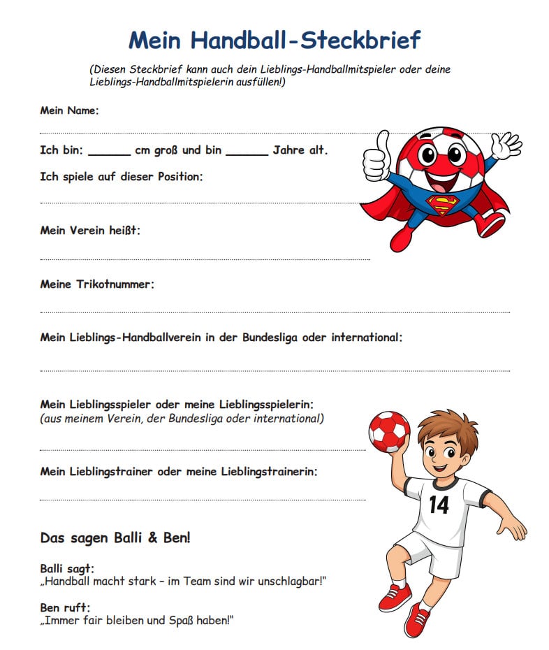 Ein Steckbrief, eine Autogrammseite und eine Ausmalvorlage laden dazu ein, das Buch ganz individuell zu gestalten. So wird es zum persönlichen Handball-Tagebuch voller Erinnerungen.
